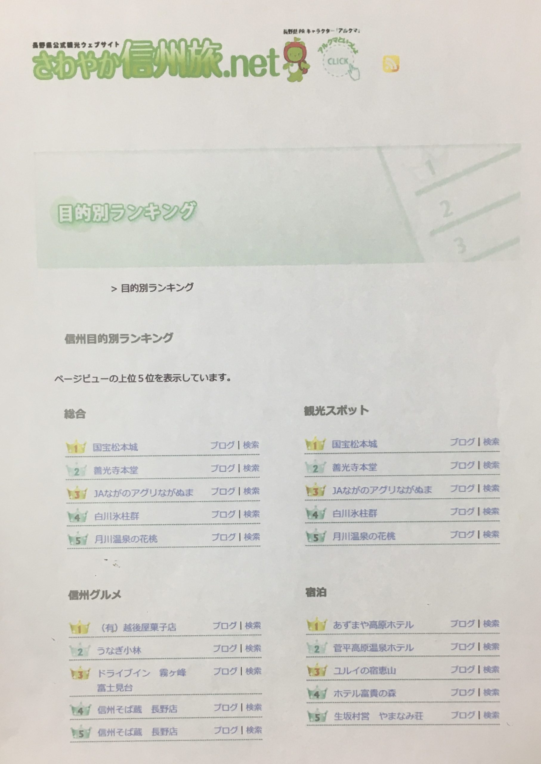 「さわやか信州旅.net」信州グルメ第1位!! ニュース 2015.02.19 「さわやか信州旅.net」さんの信州グルメ部門で第1位になりました! 長野県内の数多くあるお店の中から選んで頂き大変光栄です。 今後ともよろしくお願いいたします。